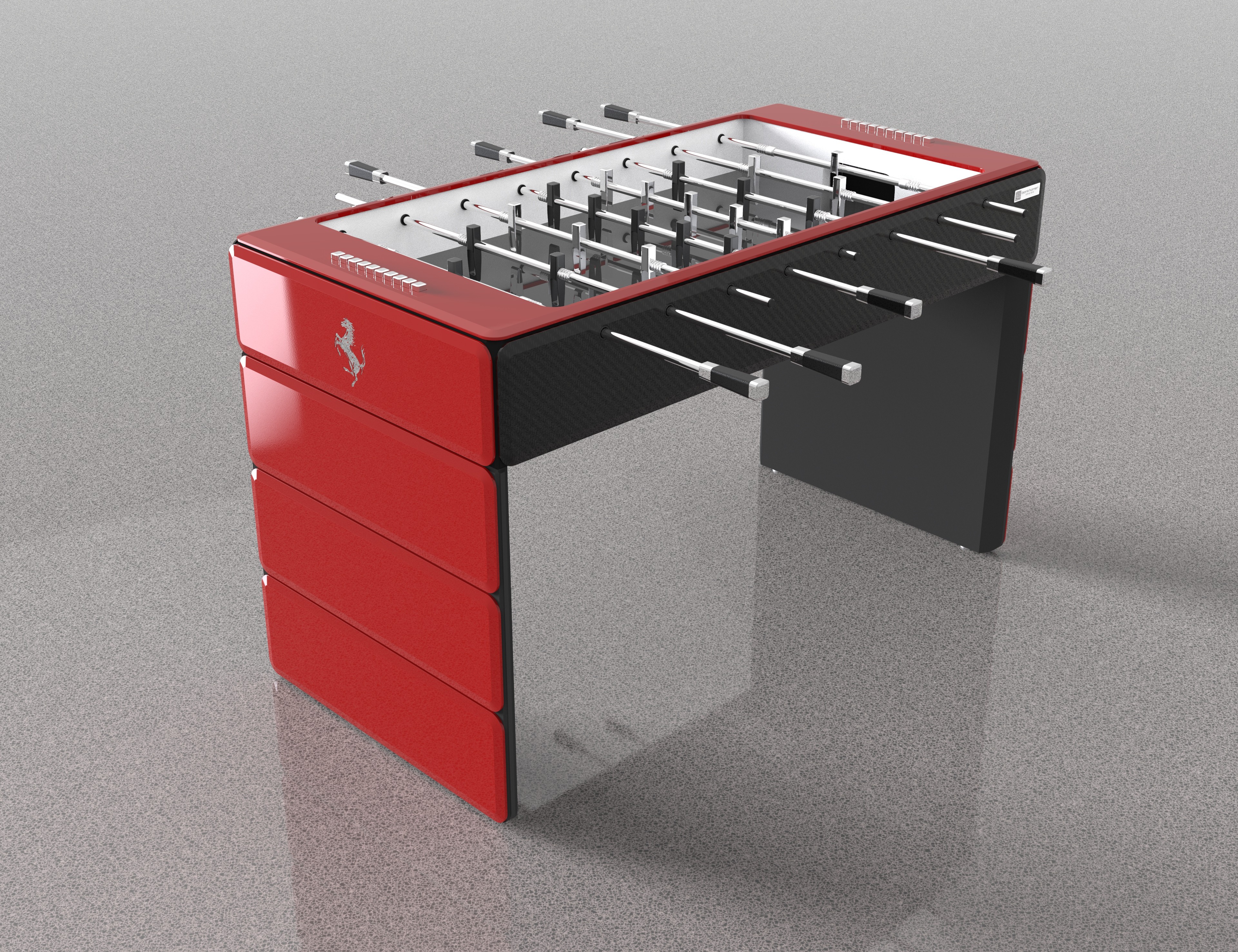 Steht für kompromisslose Präzision und Gestaltung auf höchstem Niveau. Ausgewählte Materialien, fein abgestimmte Oberflächen und technisch ausgereifte Komponenten formen einen Tischfußballtisch mit klarer Präsenz und außergewöhnlicher Performance – ein Gesamtbild, das Spielfreude und Handwerkskunst sichtbar vereint.
